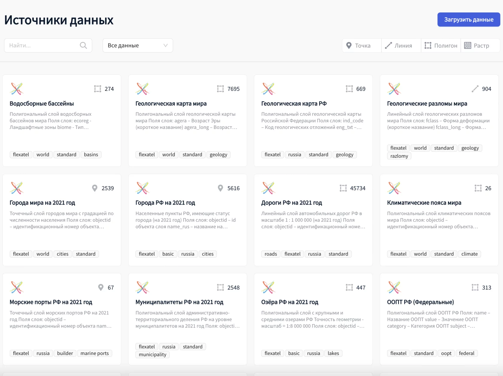 Для работы с данными необходимо в боковом меню перейти в раздел «Источники данных».