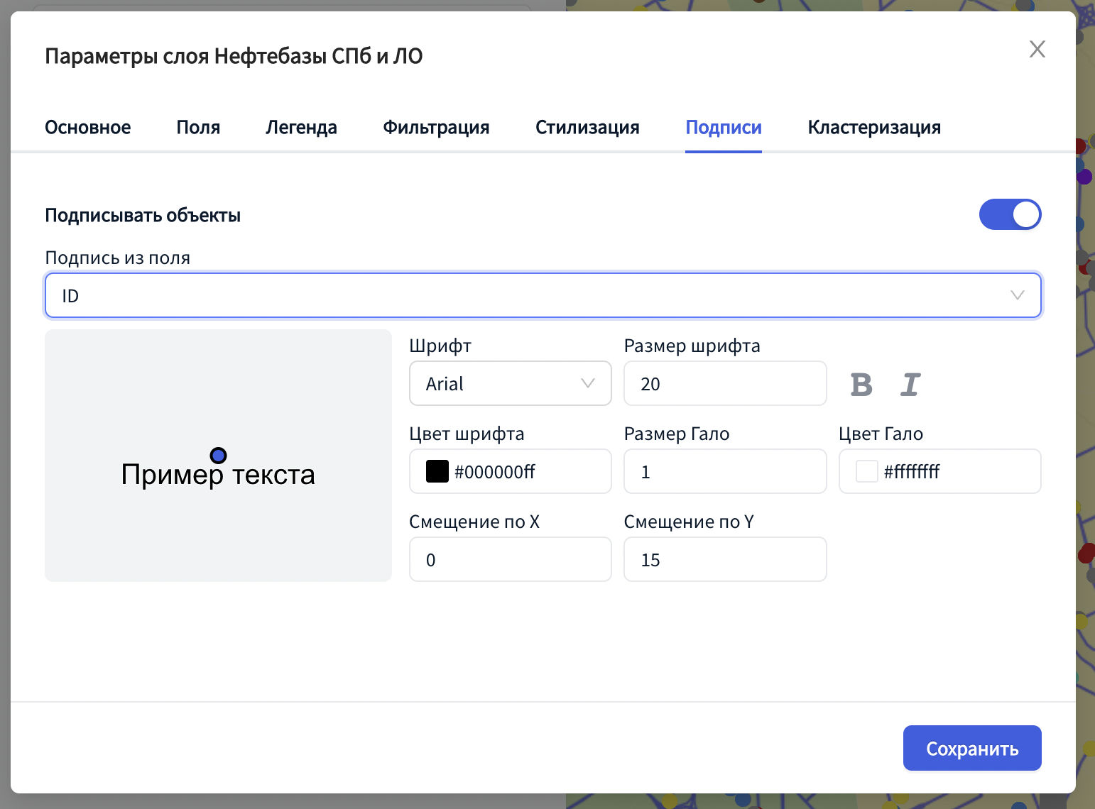 В этом разделе вы можете включить и настроить стиль подписи объектов по выбранному атрибуту.