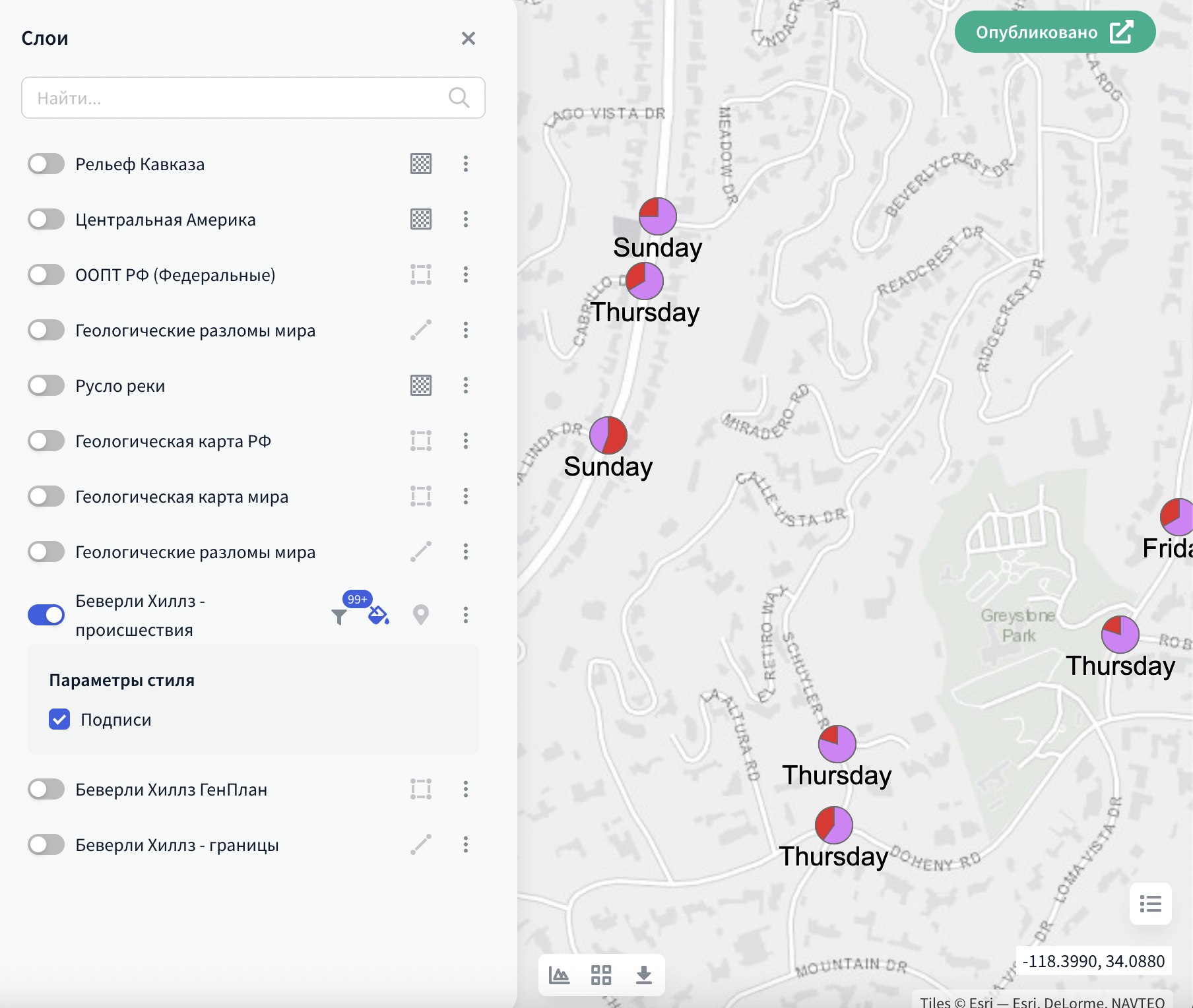 Конечному пользователю будет предоставлена возможность включать и отключать подписи объектов при помощи нажатия на значок Стиля напротив названия слоя.