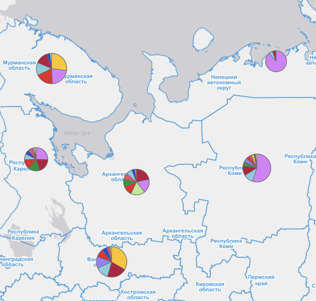 Данный стиль применим для точечного типа геометрии и предполагает отображение в точке круговой диаграммы, настроенной по нескольким атрибутам слоя.