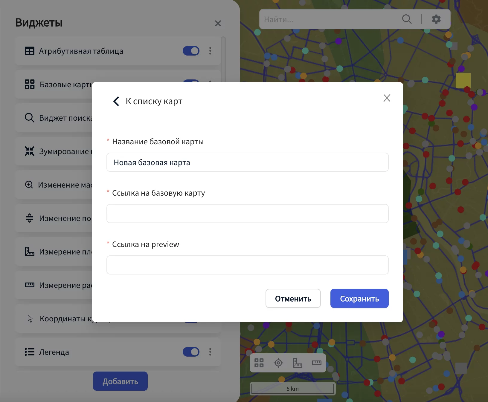 Чтобы загрузить свою базовую карту необходимо нажать на кнопку «Добавить базовую карту».
