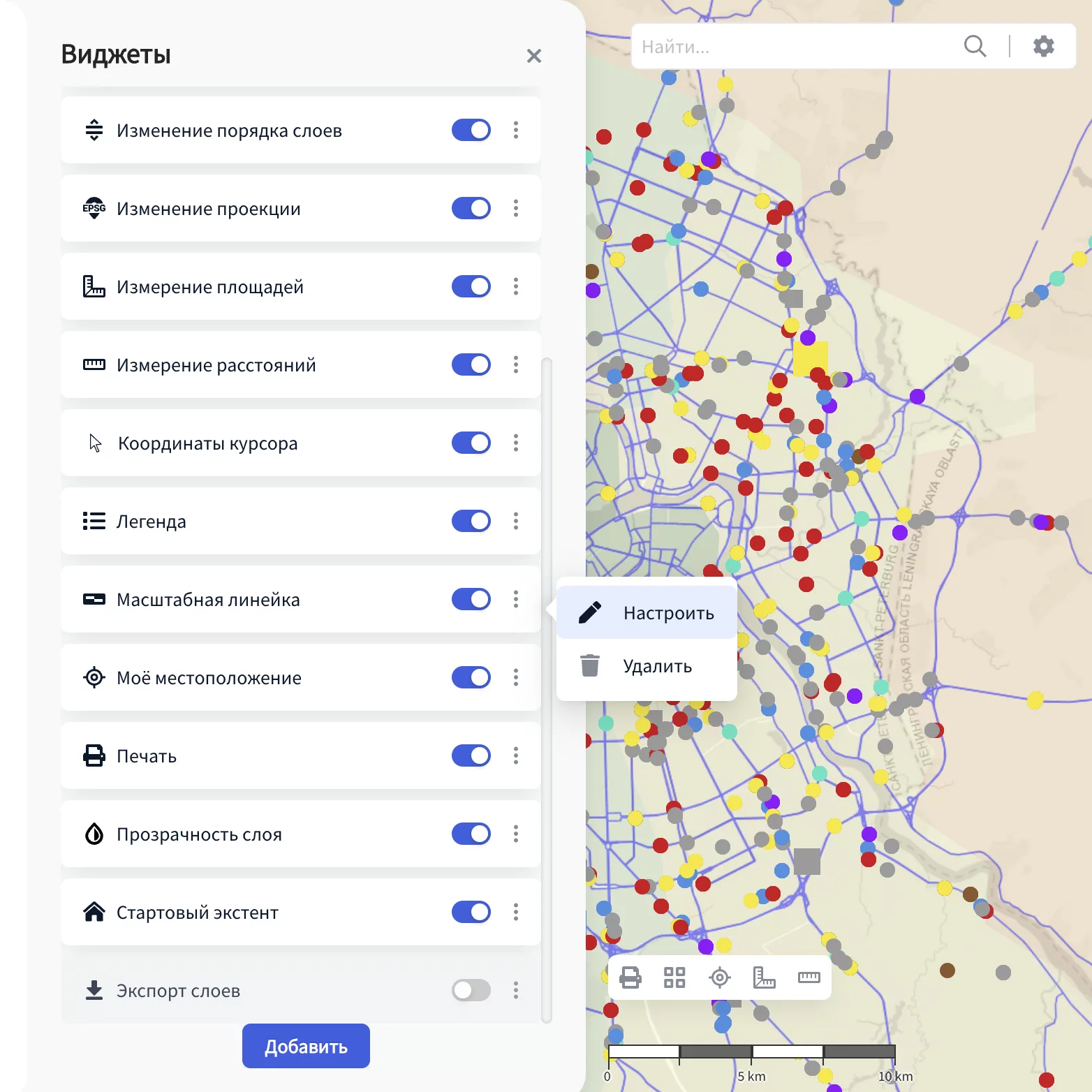 Для настройки виджета необходимо нажать на три точки напротив названия виджета и выбрать пункт «Настроить».