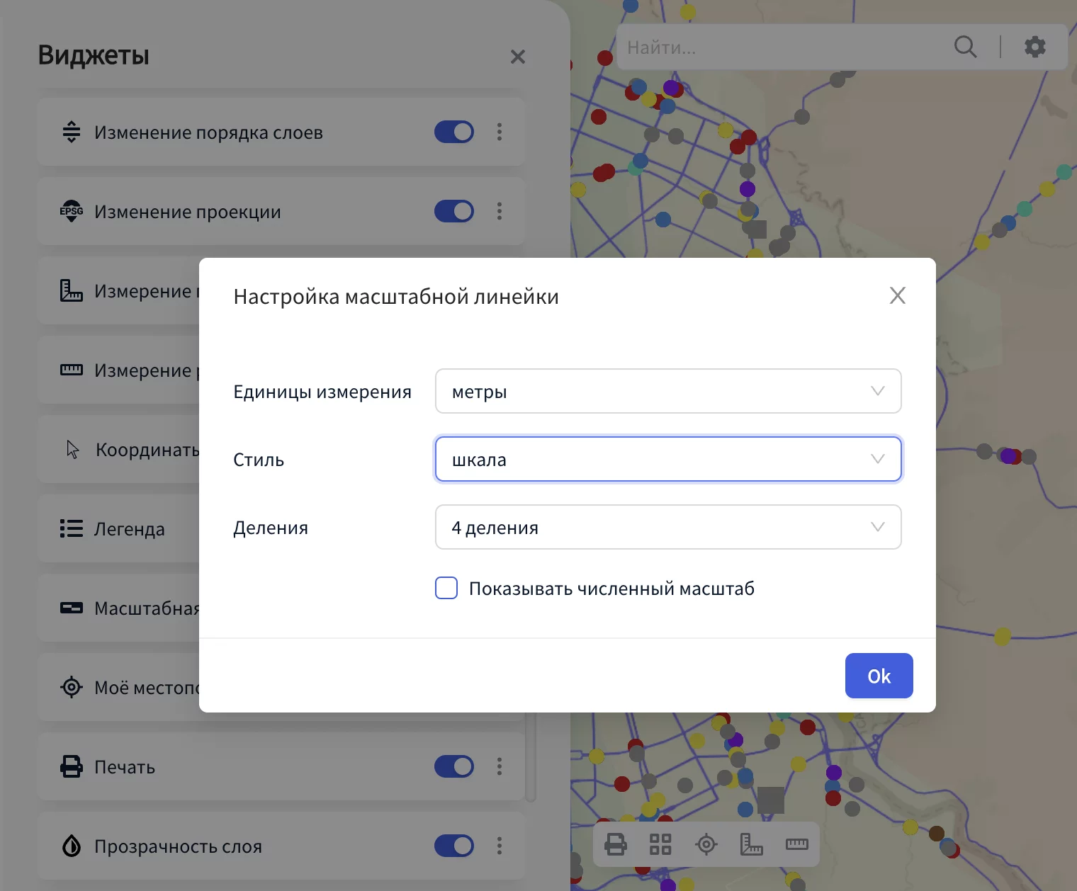 Для стиля «Шкала» вы можете настроить количество делений от 2 до 8, которые будут отображаться на шкале, а также включить численное отображение масштаба.